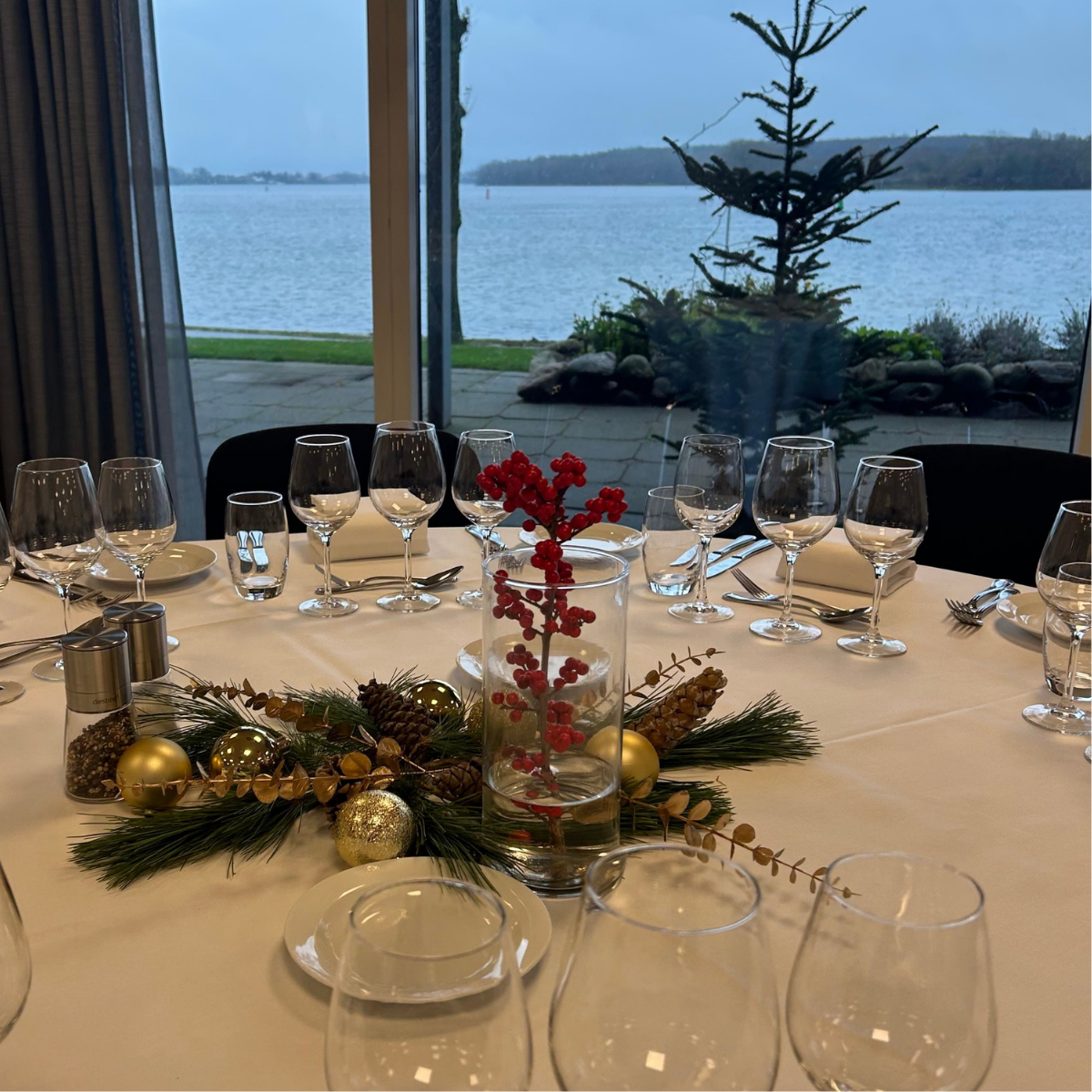Vi skruer ned for lyset og op for musik og julehygge i restauranten, hvor I kan nyde julestemningen og skåle med vores andre julegæster.